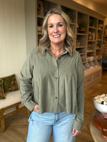 Oversized Chambray Denim Raglan Sleeve Blouse-Plus Sizes Available