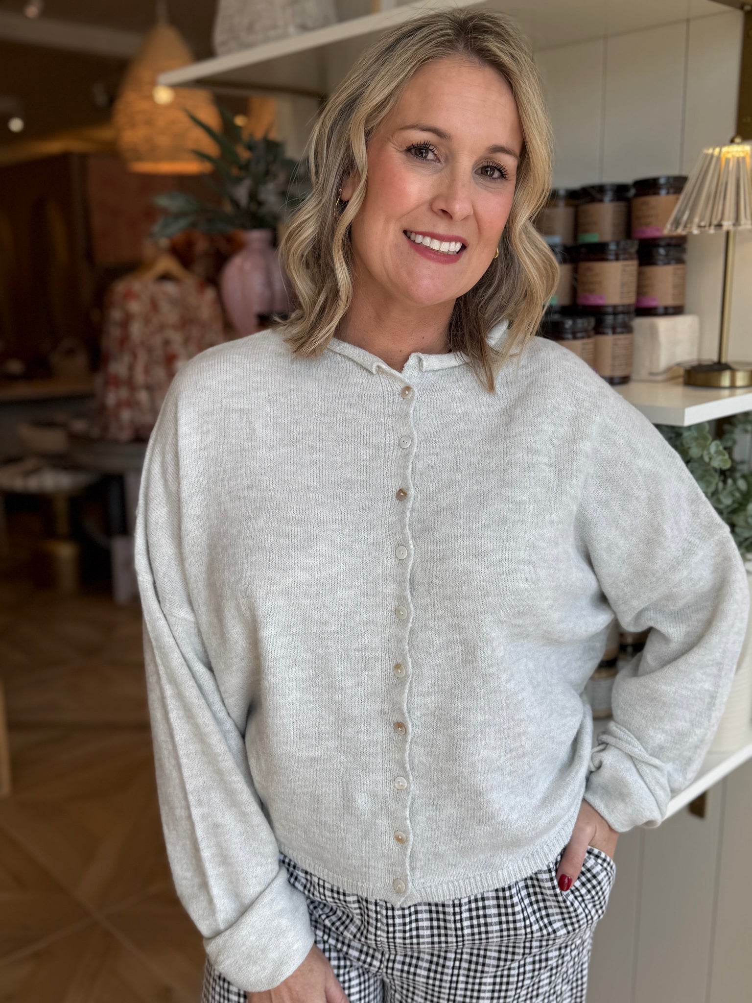 Light Grey Oversized Button Up Sweater. Acrylic Blend