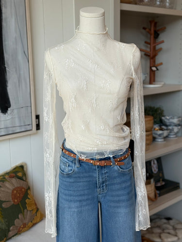 Ecru Lace Mock Neck Top