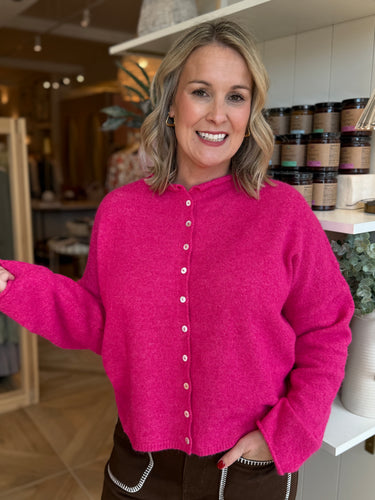 Fuchsia Oversized Button Down Cardigan