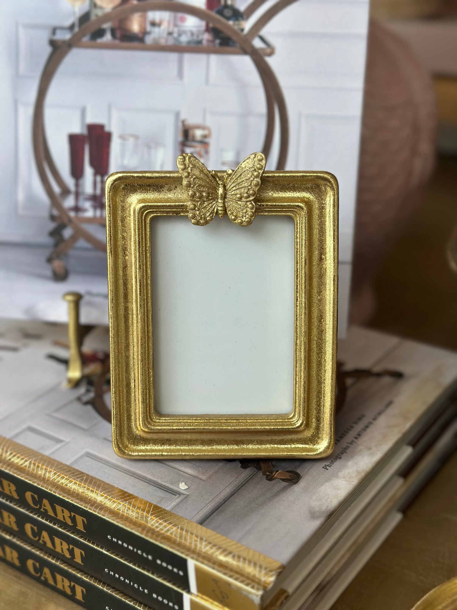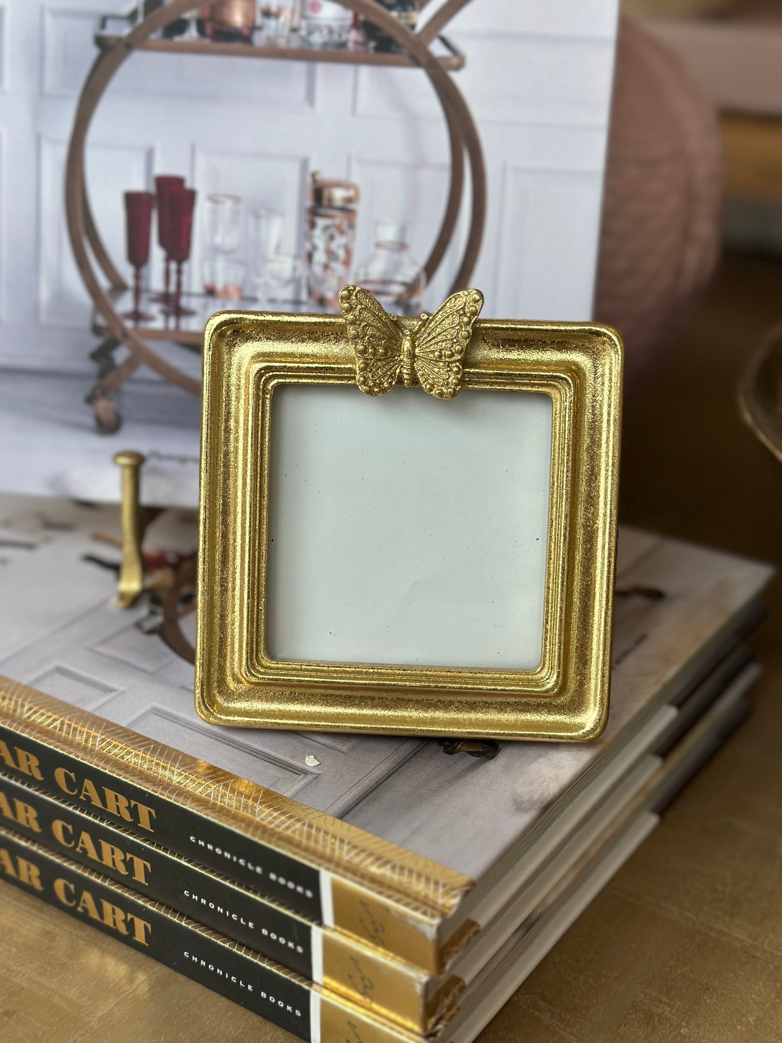 Gold Butterfly Photo frames in various sizes and shapes. Hold 2.3" x 3.5" and 3" x 3" photo.