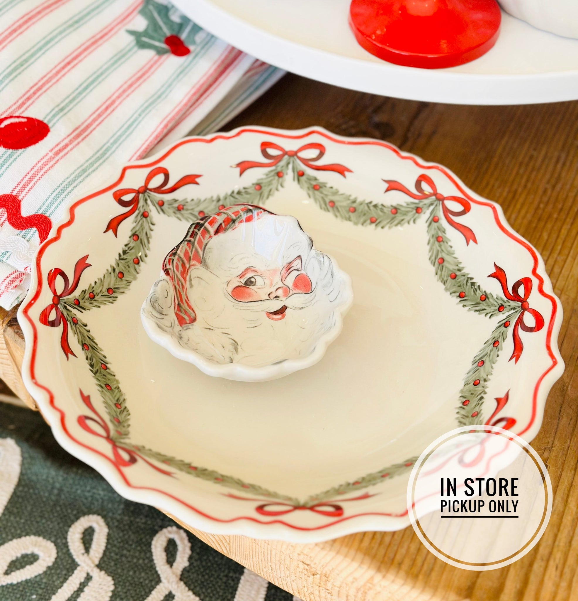 2 pc.Set Santa Chip & Dip Stoneware Bowl with Garland and Santa Design. 11" Round
