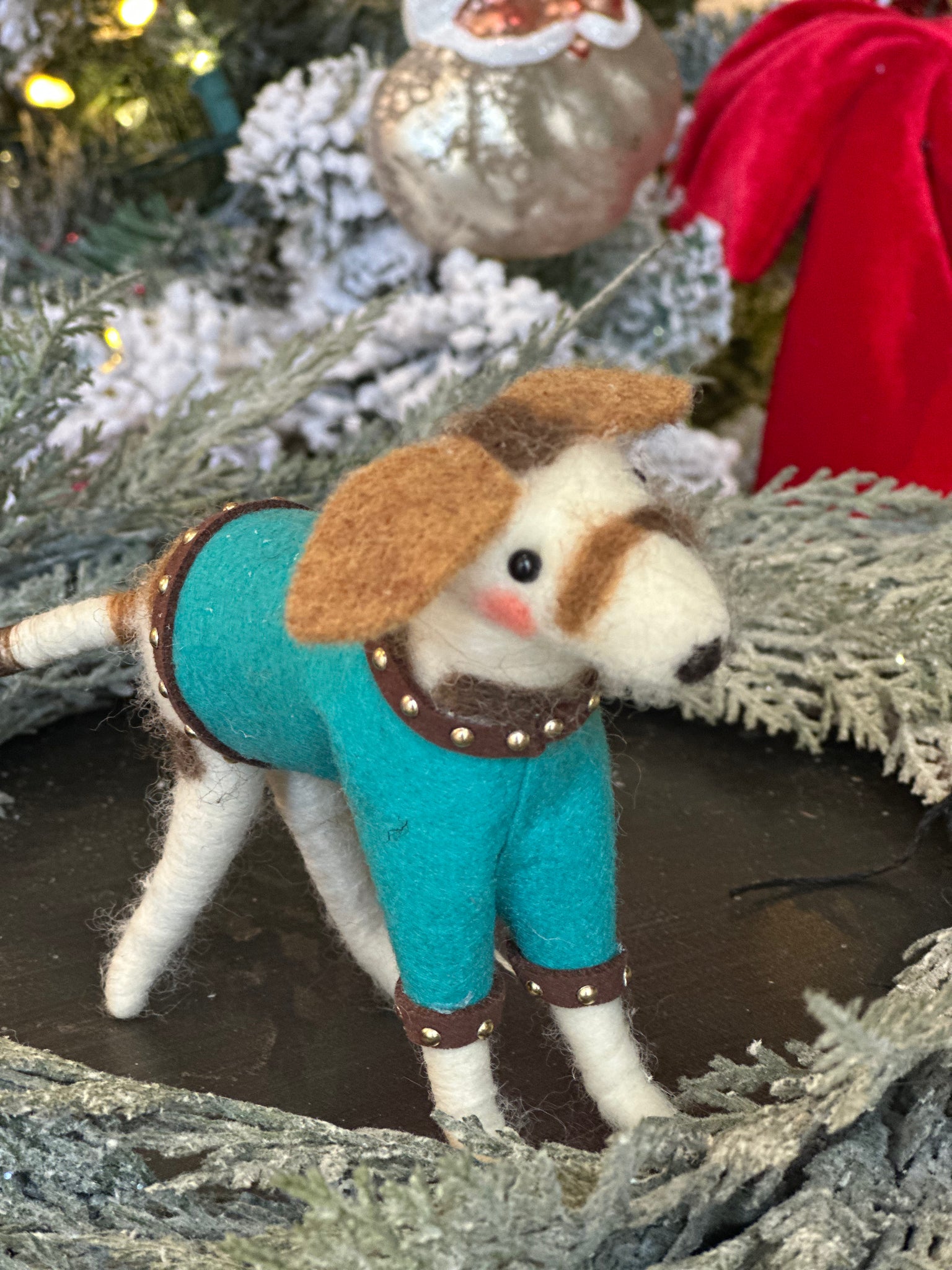 Fancy Wool Felt Dog Ornaments. 4"-6"