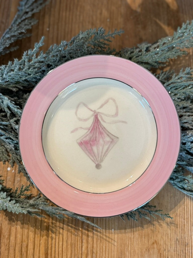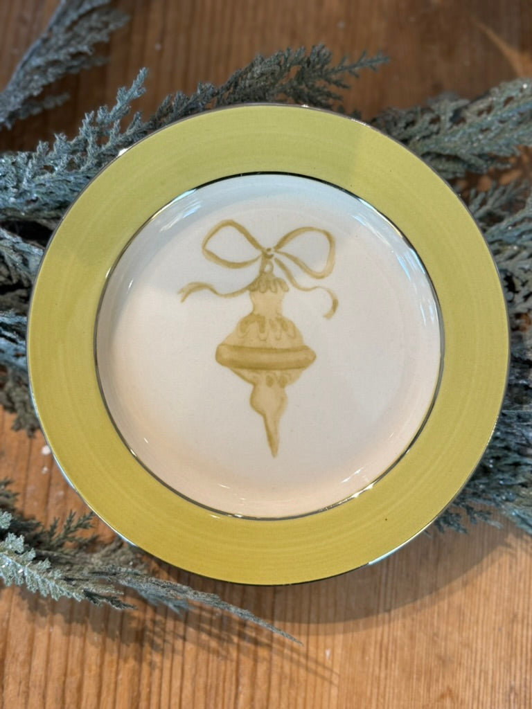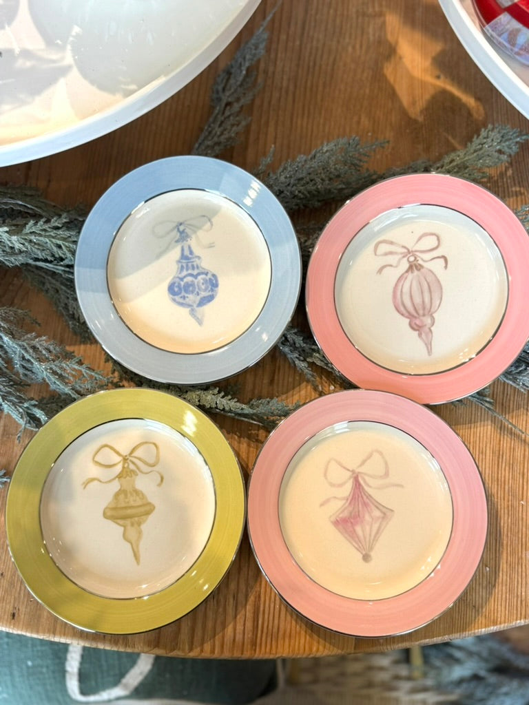 Vintage Inspired Stoneware 6" Ornament Plates with Silver Detail.