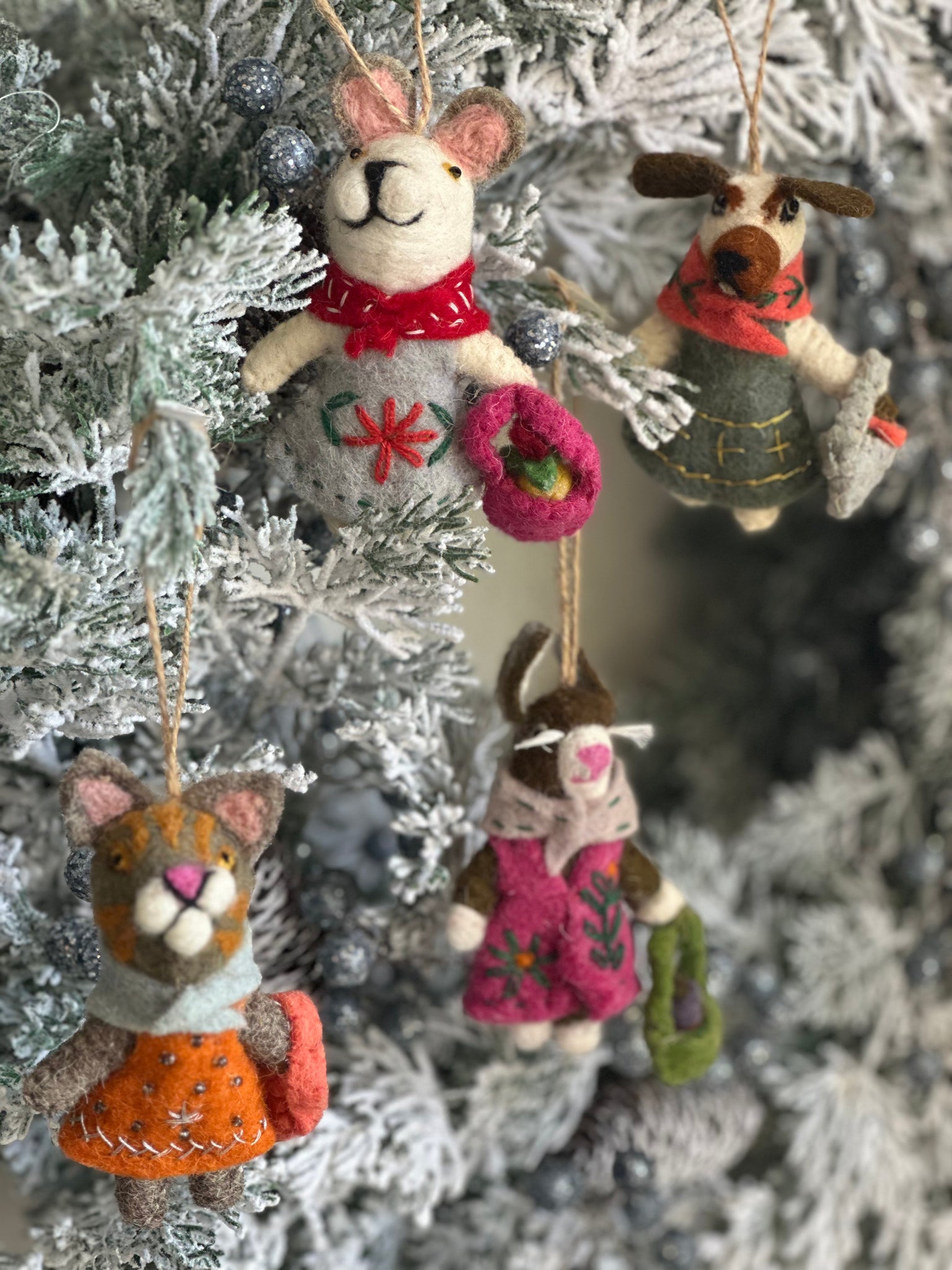 Cute little mice carrying baskets and wearing scarves, 4.25" tall